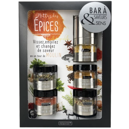 MELANGE D’EPICES POUR VIANDE ROUGE : herbes de provence (romarin, basilic, thym, sariette), oignon, ail, piment.