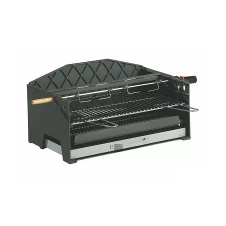 Grille foyère en fonte supportant le charbon de bois. Celle-ci peut être positionnée verticalement afin de constituer un foyer de cuisson verticale idéal pour la fonction rôtissoire