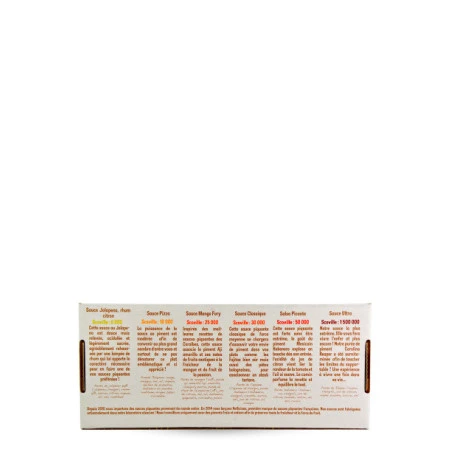 L’échelle de Scoville est indiquée sur le coffret afin que vous puissiez goûter les sauces de la moins forte à la plus puissante.