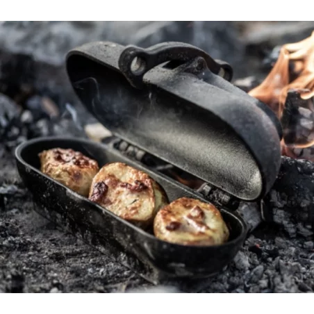 Le rôtissoire Petromax permet de faire cuire des pommes de terre, et des légumes en ajoutant un goût rôti. Son corps en fonte permet de dispenser la chaleur idéalement.