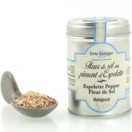 La fleur de sel au piment d’Espelette est un produit de la marque Terre Exotique. Le piment d’Espelette, spĂ©cialitĂ© du pays basque est un piment aux arĂ´mes d’Ă©tĂ©, tomate bien mĂ»res, foin sĂ©chĂ© sans oublier une douce note de poivrons. Le tout assemblĂ© avec la fleur de sel de Madagascar vous permettra d’accompagner tous vos plats.